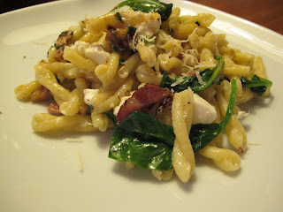 - När pastan är färdig, häll av vattnet och häll i pastan i stekpannan med fläsket, vitlöken och chilin