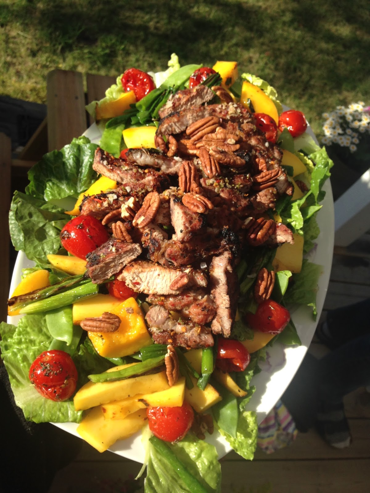 Till varmrätt lagade vi lammrostbiff sous vide ugnen. Till lammrostbiffen gjorde vi en rödvinssky, ett tryfflepotatispuré och lite savoykål med bacon.