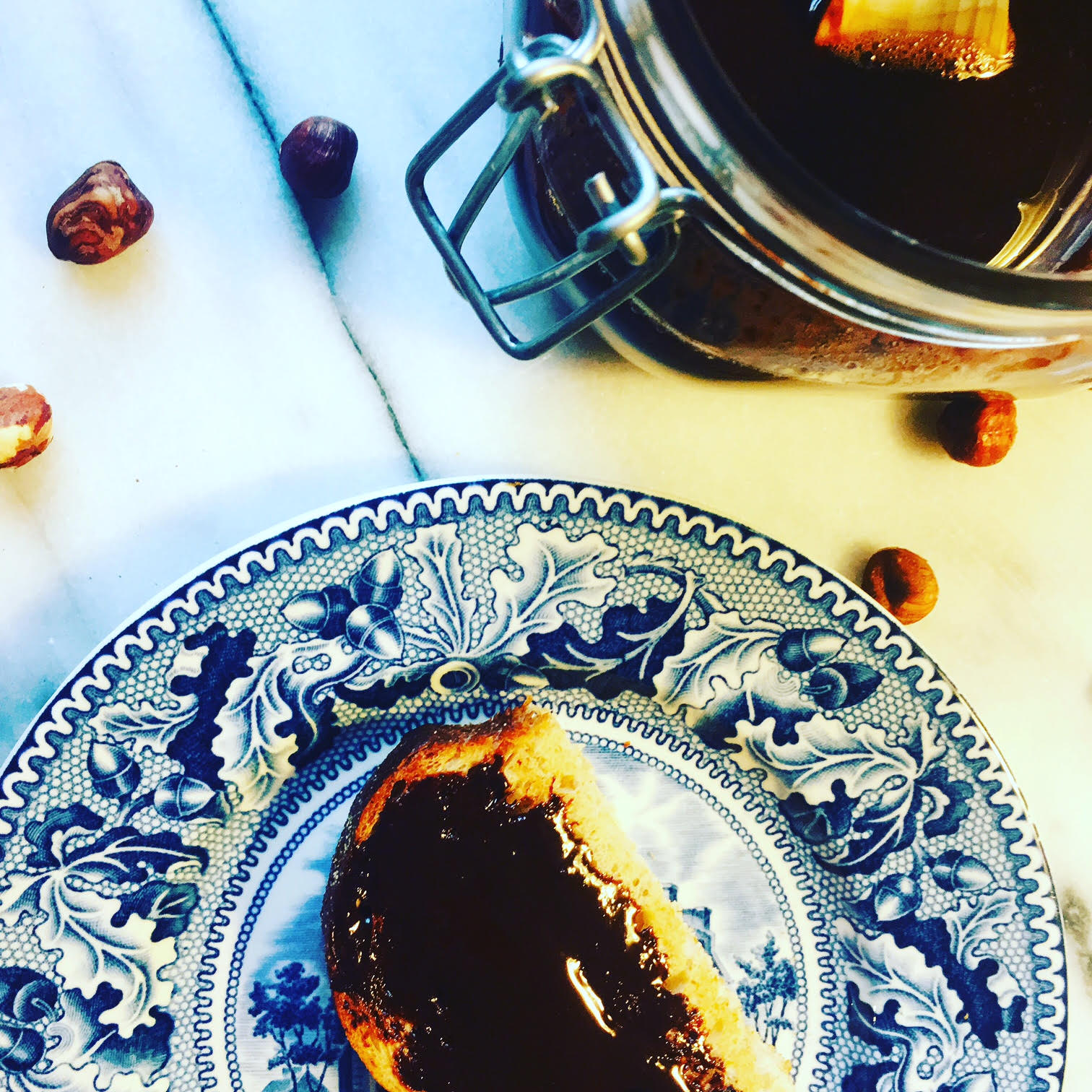 Än så länge har han inte fattat att det även finns att köpa i Sverige. Jag har liksom velat ha det som del av semestern inte en del av vardagen. När jag ändå kom med förslaget att vi kunde göra egen nutella svarade han : "Mamma, du är ett geni!"